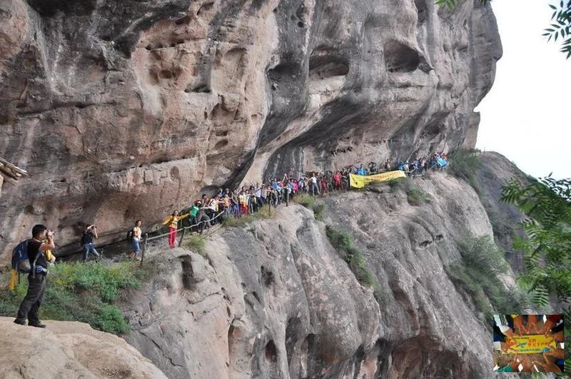 大家一边欣赏着九龙山的石壁,洞穴,悬崖美景,一边安全的完成了随后的难度较大登顶旅行。