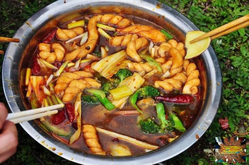 大家分好班组,扎营开火,随着翻滚的火锅,遍山遍野的的花香,刹那变成了火锅诱人的香气。