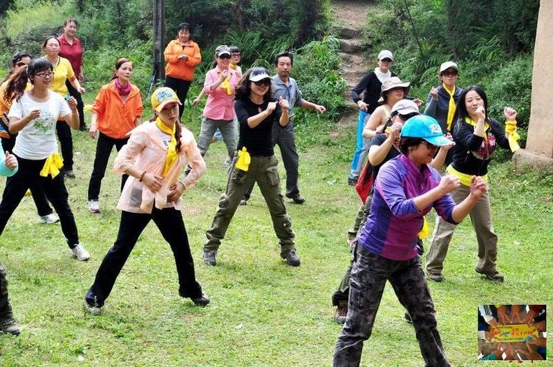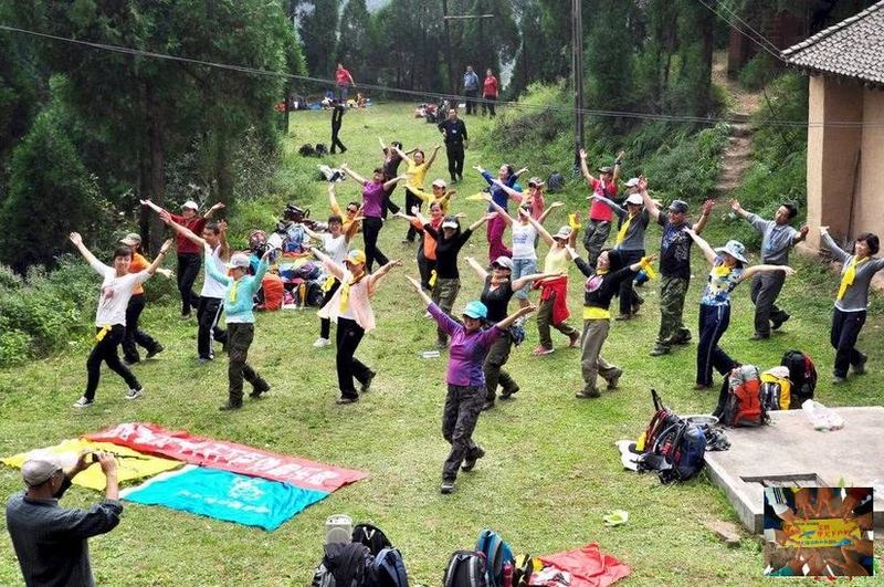 酒足饭饱,稍作休息,依旧是甲天下团队的品质,垃圾集中收集,打包带走。接下来,就是二传手老师教大家高山健美操的精彩时间了。