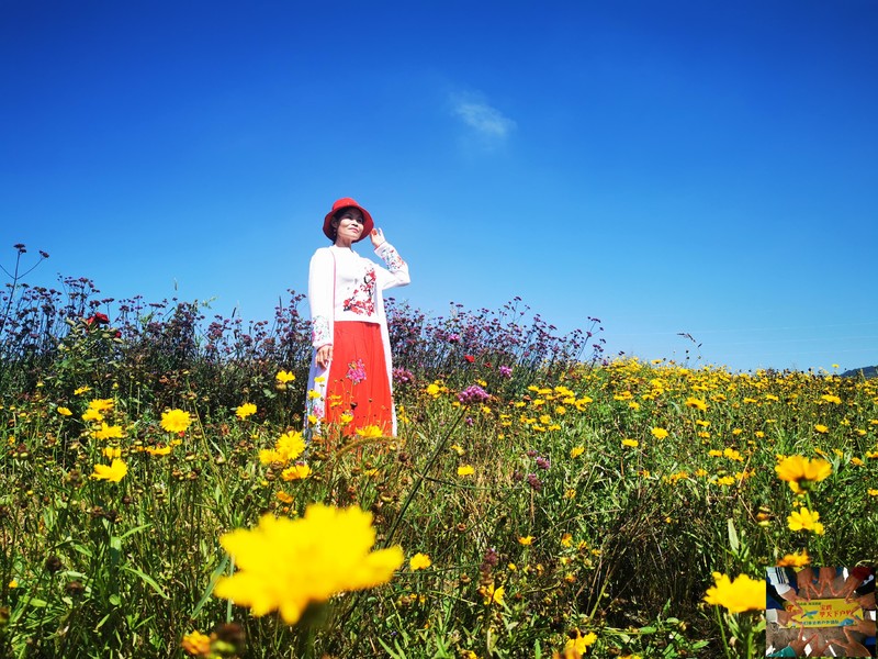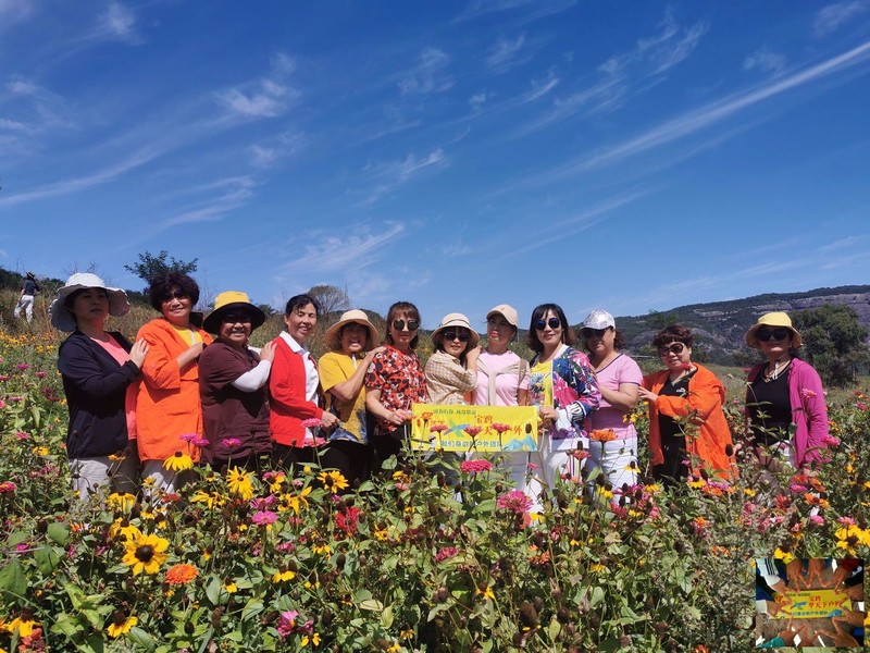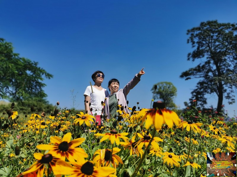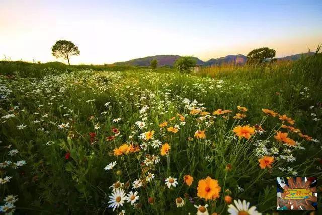 最让人欣喜的,还是牧场中的花海,她们骄傲地开放着、色彩斑斓,与原生的杨树、核桃树和狗尾巴草、艾草等一起角逐游客的最佳镜头。
