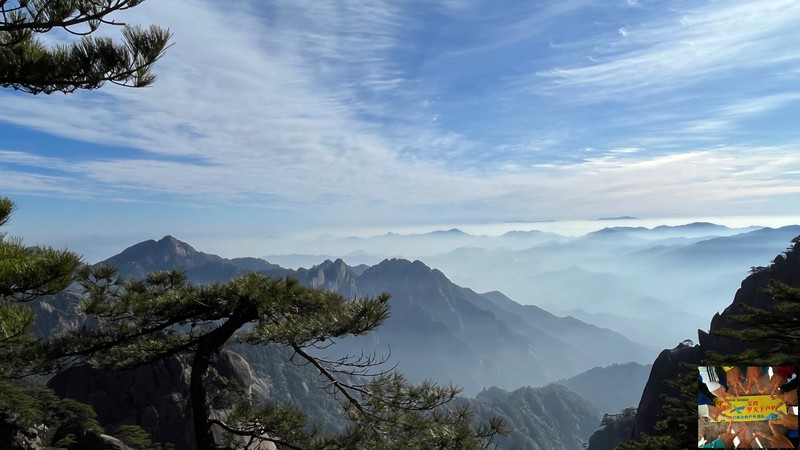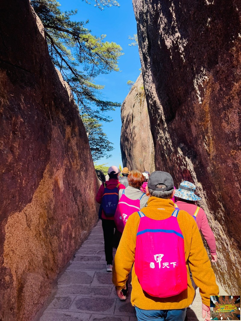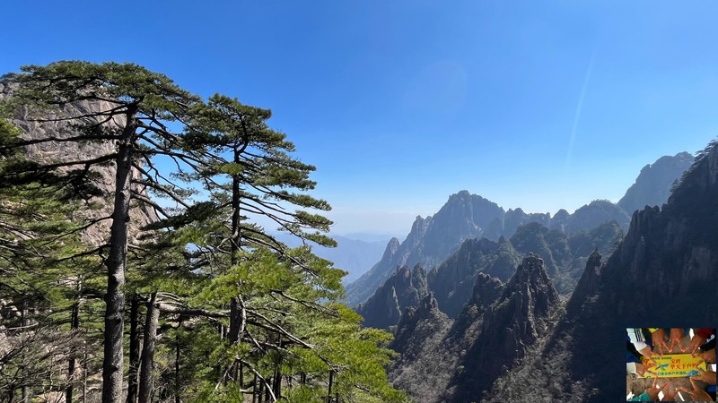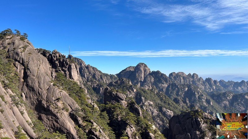 在此可望天都峰.莲花峰;经莲花峰腰、百步云梯、一线天或鳌鱼洞至鳌鱼峰。