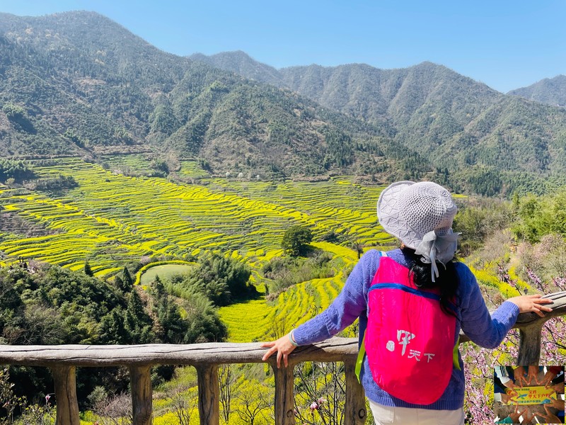 遍布于梯田,丘陵之间,黄花白房,黛色的屋顶瓦脊,徽州特色。