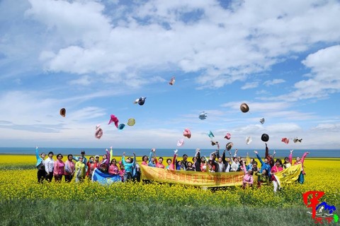 看民族和睦的盛世,听中华团结的歌声。青海湖沿路风光无限,允许神往,允许期待。在蔚蓝的青海湖边跳跃奔跑,我们找到青春无限的力量......