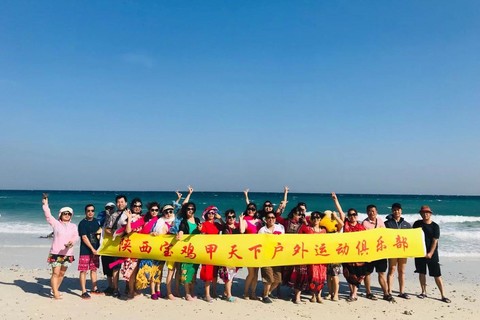 甲天下户外团队集合,甲天下的朋友们带着歌声到达咸阳机场,按序登机,飞至美丽温暖的海南岛。